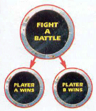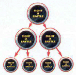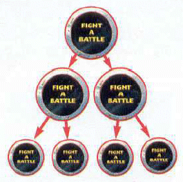In a more extended campaign you end up with something which looks a bit like a family tree with each battle spawning a couple of others depending on the result.
